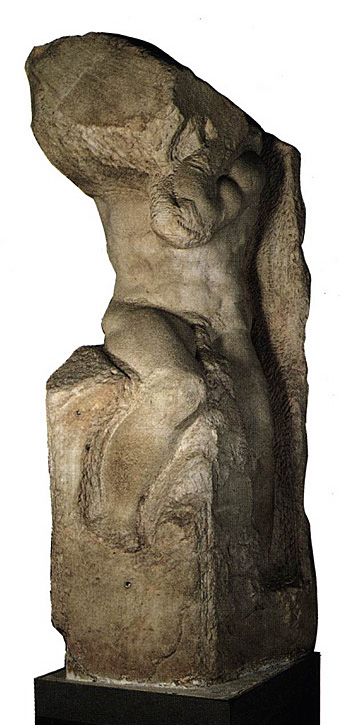 この引用に見られる、縛られた奴隷は、現在フィレンツェのアカデミア美術館に四体、収蔵されている。アカデミア美術館のホームページによれば、「ミケランジェロは故意に、これらの彫刻を未完成のままにして、物質的囚われの状態から解放されようともがく人間の永遠の苦悩を表現しようとした」と解説されている。これらの彫刻との比較において、天井画では、旧約の人物たちが、闇から解放されようと、あるいは闇のなかに沈み込もうとしてもがいている、というダントのレトリックは、私を唸らせた。つまりこの大規模な修復は、縛られた奴隷の彫刻を、ミケランジェロの意図をはきちがえて、石から解放し人体像を彫り出すも同然で、ミケランジェロがこれらの作品に受肉した意味を台無しにするようなものである、というのである。縛られた奴隷において、奴隷を束縛する石に相当するものが、天井画においては、人物たちを取り囲む闇だというのである。実に説得力のある議論だ。